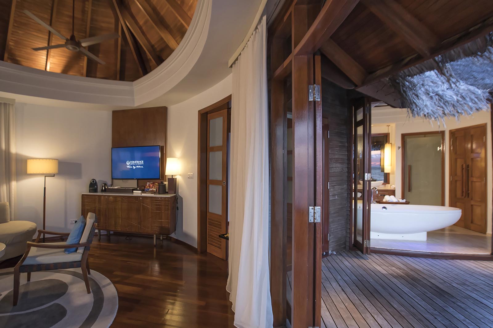 Relish the serenity of your own spacious water villa floating above the turquoise lagoon. Experience the elegant luxury of your own beautiful wooden villa with its high raftered ceiling, open-plan sleeping and living areas and stylish modern bathroom. Sunbathe or swim from your own private deck or take a dip in your very own plunge pool.